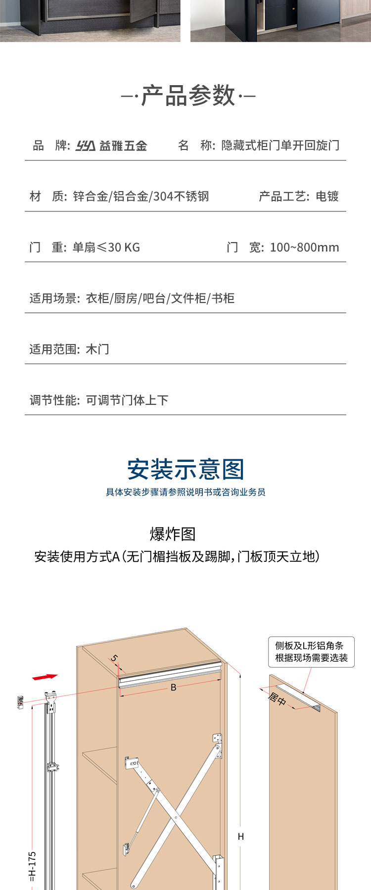 YE33 隐藏式柜门单开回旋门